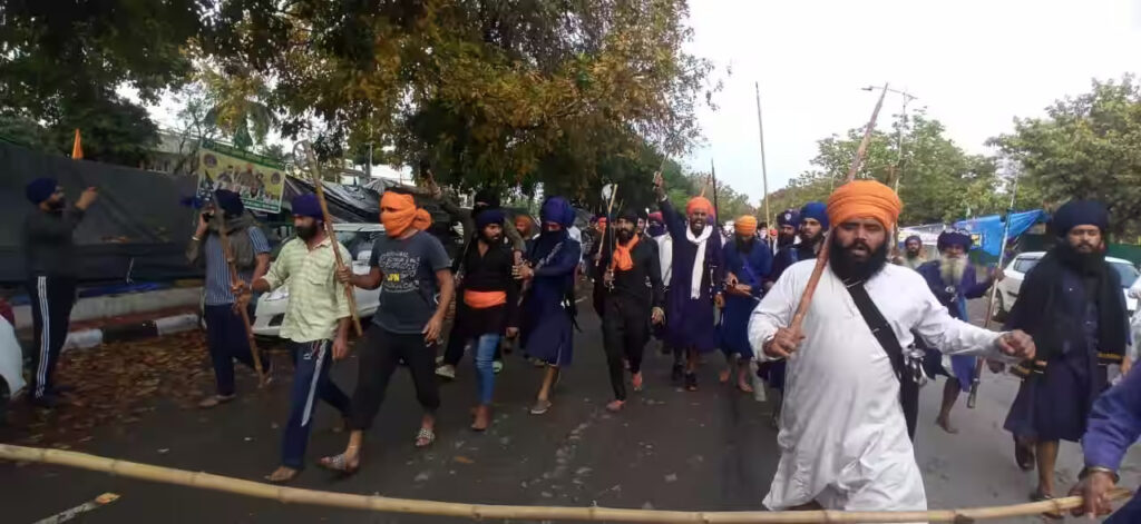 In the Recent Article HT released image of Nihang Sikh protesting in Mohali.