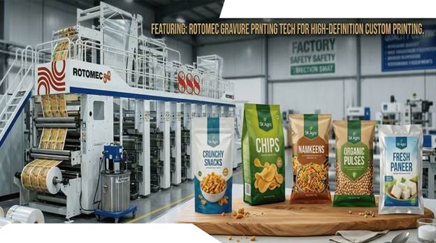 The company utilizes advanced rotogravure printing technology, which ensures sharp graphics, vibrant colors, and consistent output across large production runs. In today’s competitive retail landscape, packaging plays a vital role in attracting customers, and SK Agrofood Tech Pvt Ltd helps brands stand out with visually appealing designs.